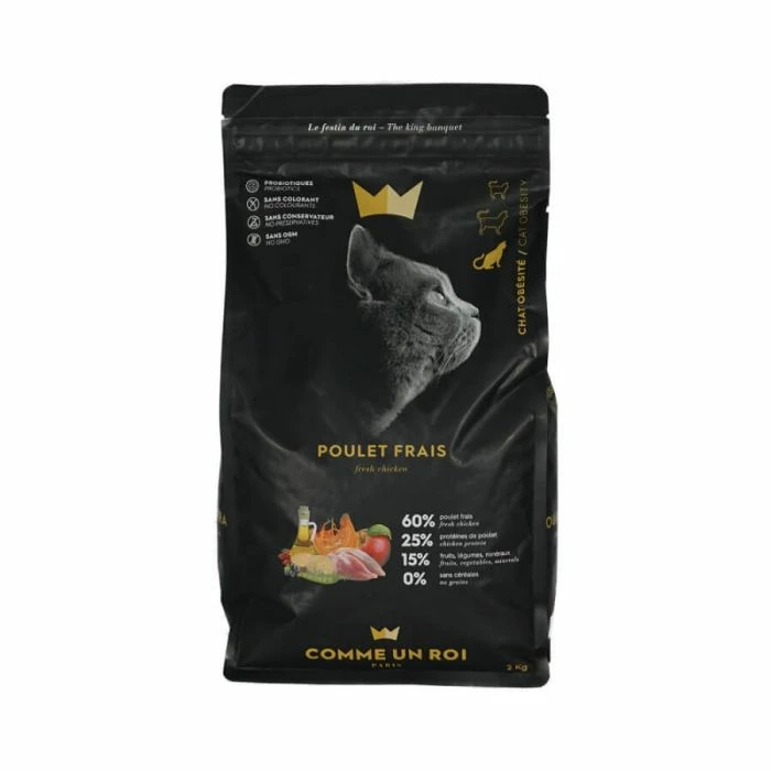 Le crocchette per gatto adulto Obesity senza cereali al pollo di Comme Un Roi è il pasto perfetto per il tuo gatto. Questo alimento completo, sano ed equilibrato sarà molto apprezzato dal tuo felino grazie al suo buon sapore di carne fresca.