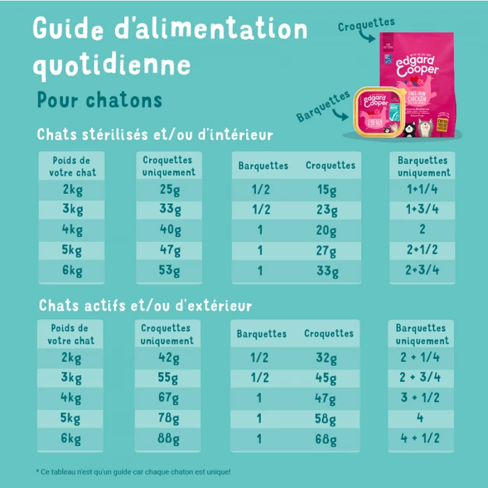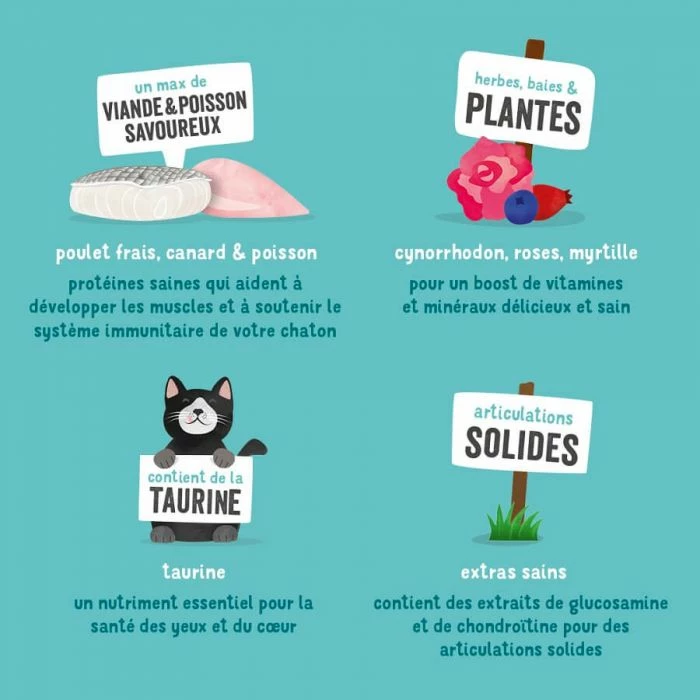 Questa ricetta è perfetta per aiutare i gattini a crescere grandi e forti. I gatti sono carnivori, Edgard & Cooper formula ricette per gattini con un minimo del 65% di carne o pesce. La carne di anatra e pollo ricca di proteine ​​aiuta i muscoli a crescere e rafforza il sistema immunitario. I gatti possono essere schizzinosi, quindi il marchio ha creato una speciale miscela di erbe, bacche e verdure per solleticare le loro papille gustative. Questa ricetta senza cereali è adatta ai gatti sterilizzati o attivi di tutte le razze.