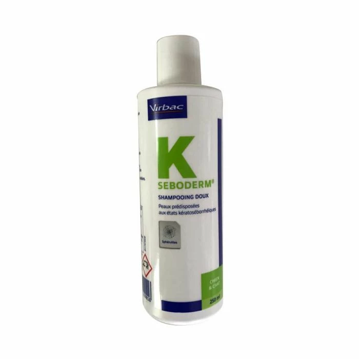 Formulato in modo specifico per la cute dei carnivori domestici (pH neutro, rispetto del film idrolipidico della superficie) SEBODERM è uno shampoo per il lavaggio regolare del cane e del gatto con pelo secco.